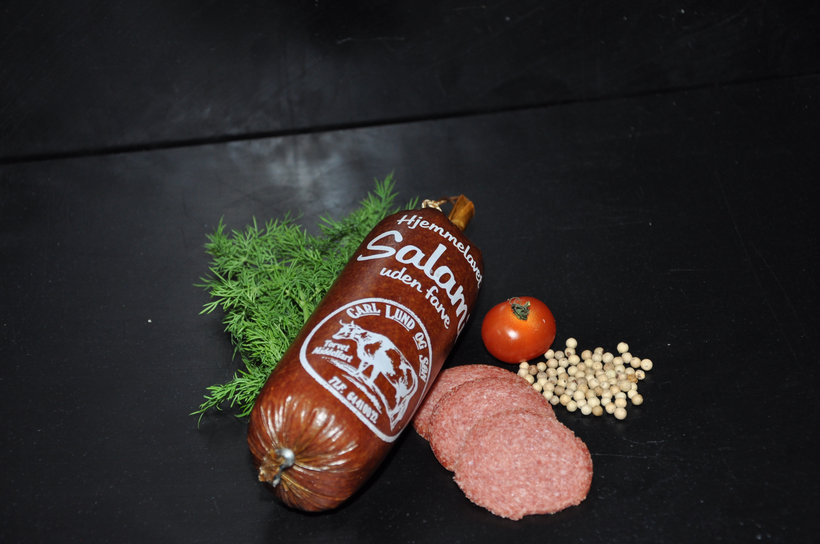 Alle vore spegepølser er røget i de gamle stenovne over bøgesmuld  tilsat enebær.